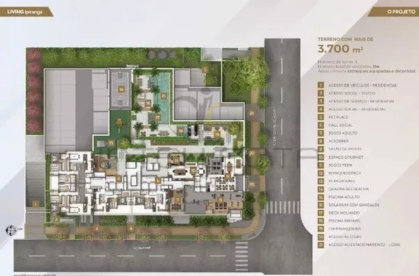 Empreendimento Living Ipiranga: terreno de 3.733 m², torre única.